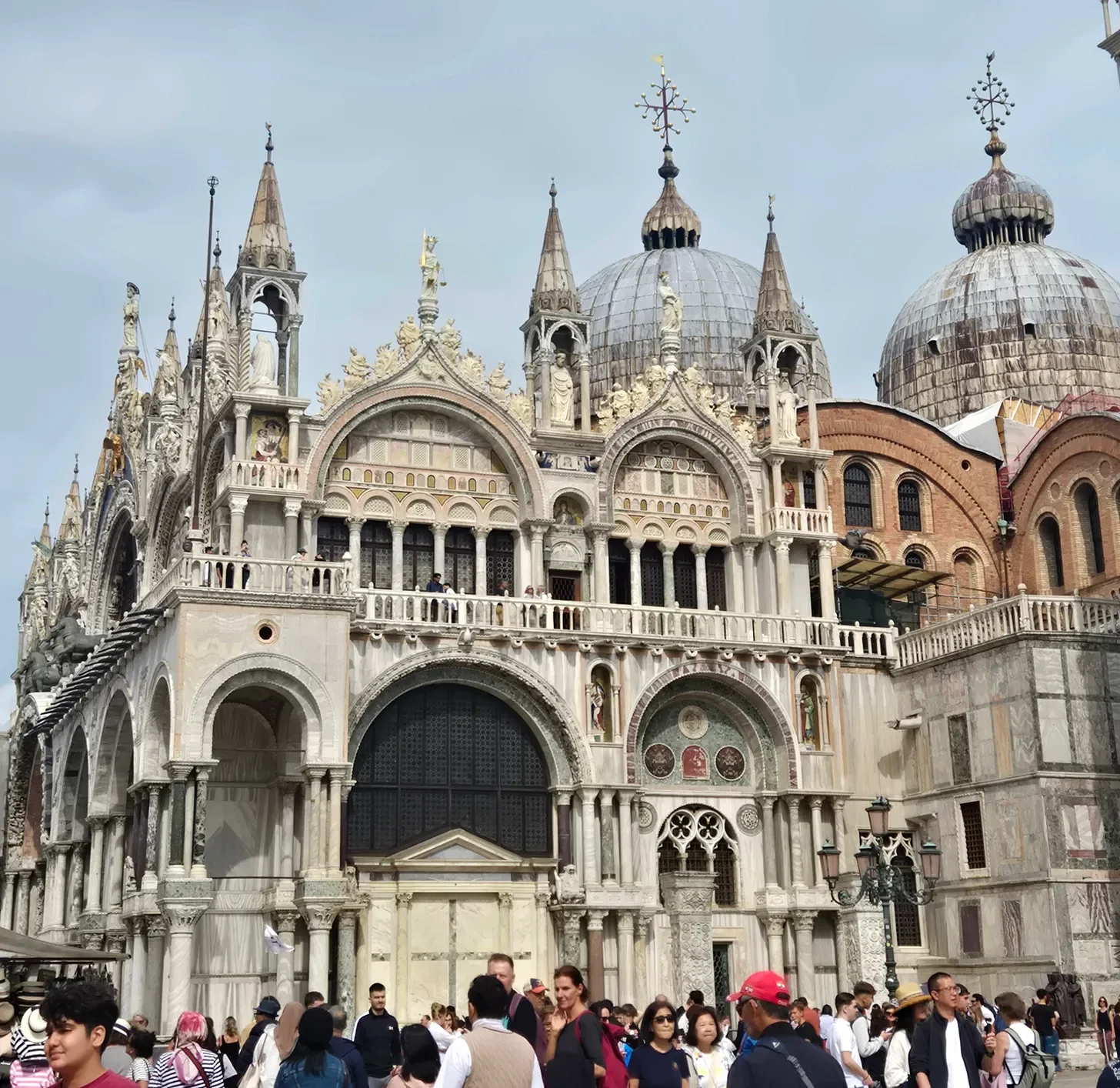 St. Mark’s Basilica is famous for its Byzantine-Gothic architecture and lavish gold mosaics.